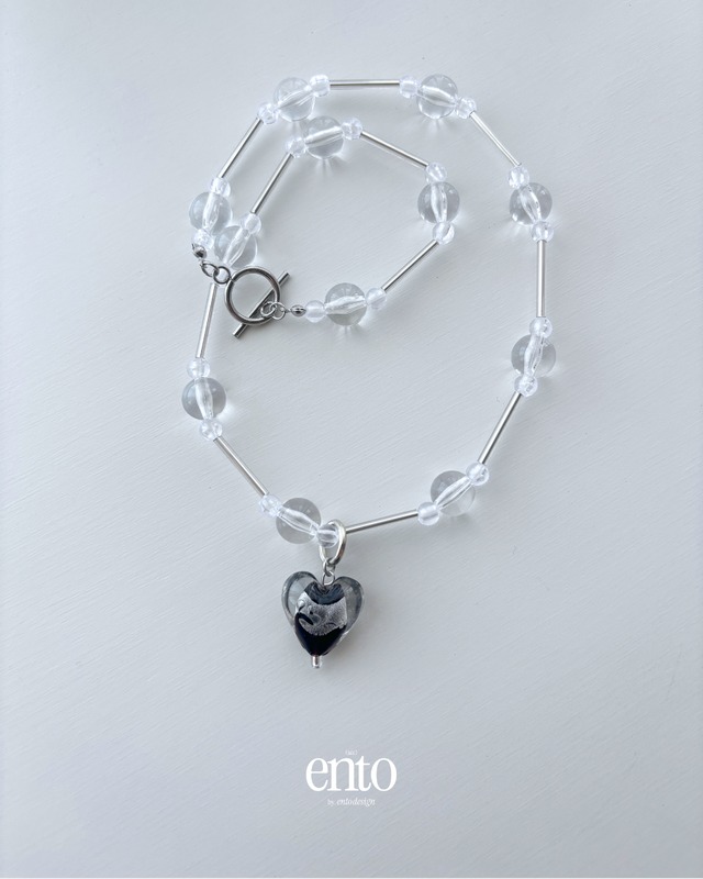 (#0080) bubble mind necklace クリアビーズのバブル感のあるベースに スモーキーなブラックのハートチャームをひと粒。 甘すぎない透明感と、遊び心のあるフォルムが スタイリングに軽やかな抜け感と不思議なニュアンスを。 小さな凹みやかけ、色ムラが見られることがございます。 個性としてお楽しみいただけましたら幸いです。 ご購入の際の実際の写真が必要な場合は、事前にお問い合わせくださいませ。 ▪️素材 ビーズ/サージカルステンレス(マンテル) ▪️サイズ 全長: 約53.0cm