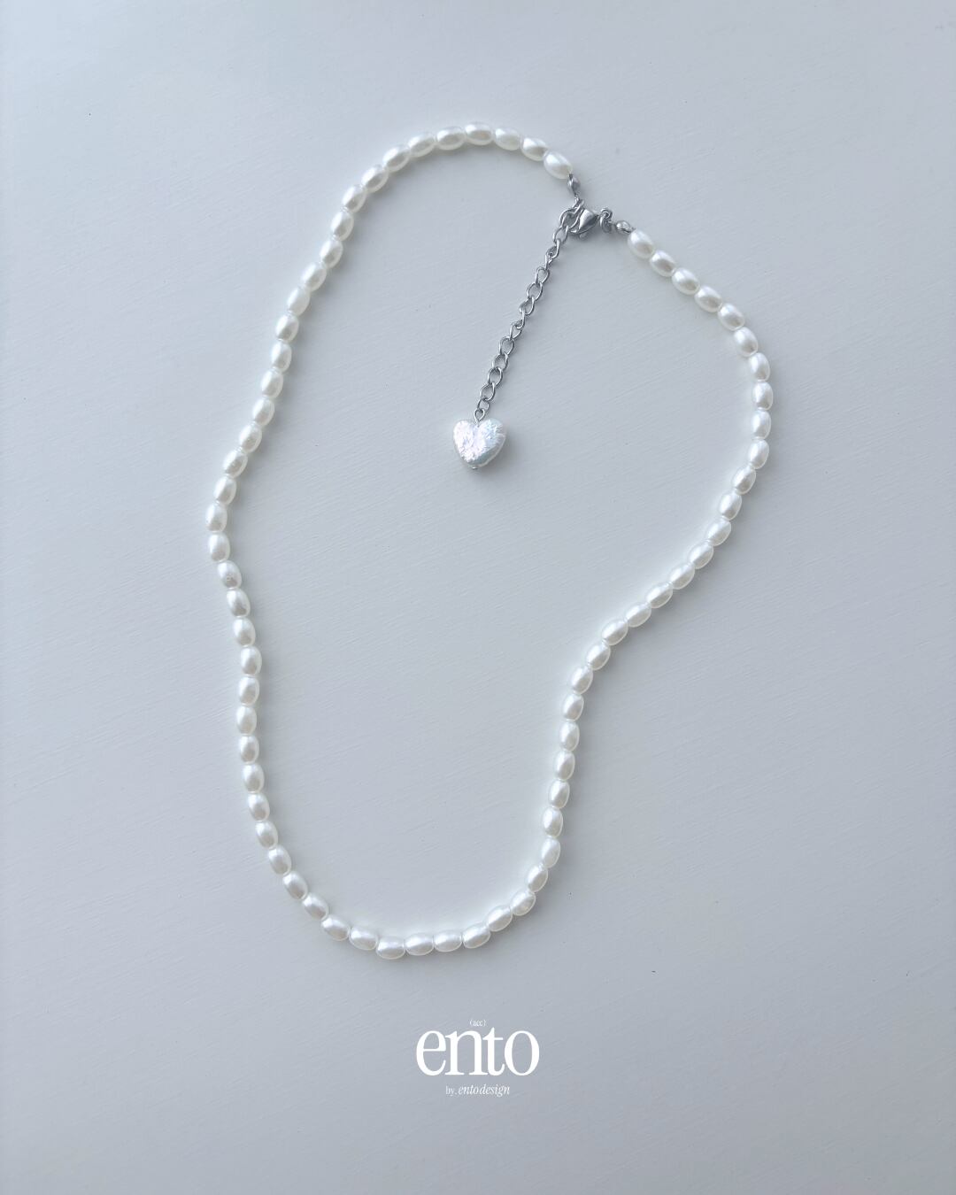 ビーズのシンプルな連なりに、ひと粒のハートパールが静かに揺れるネックレス。