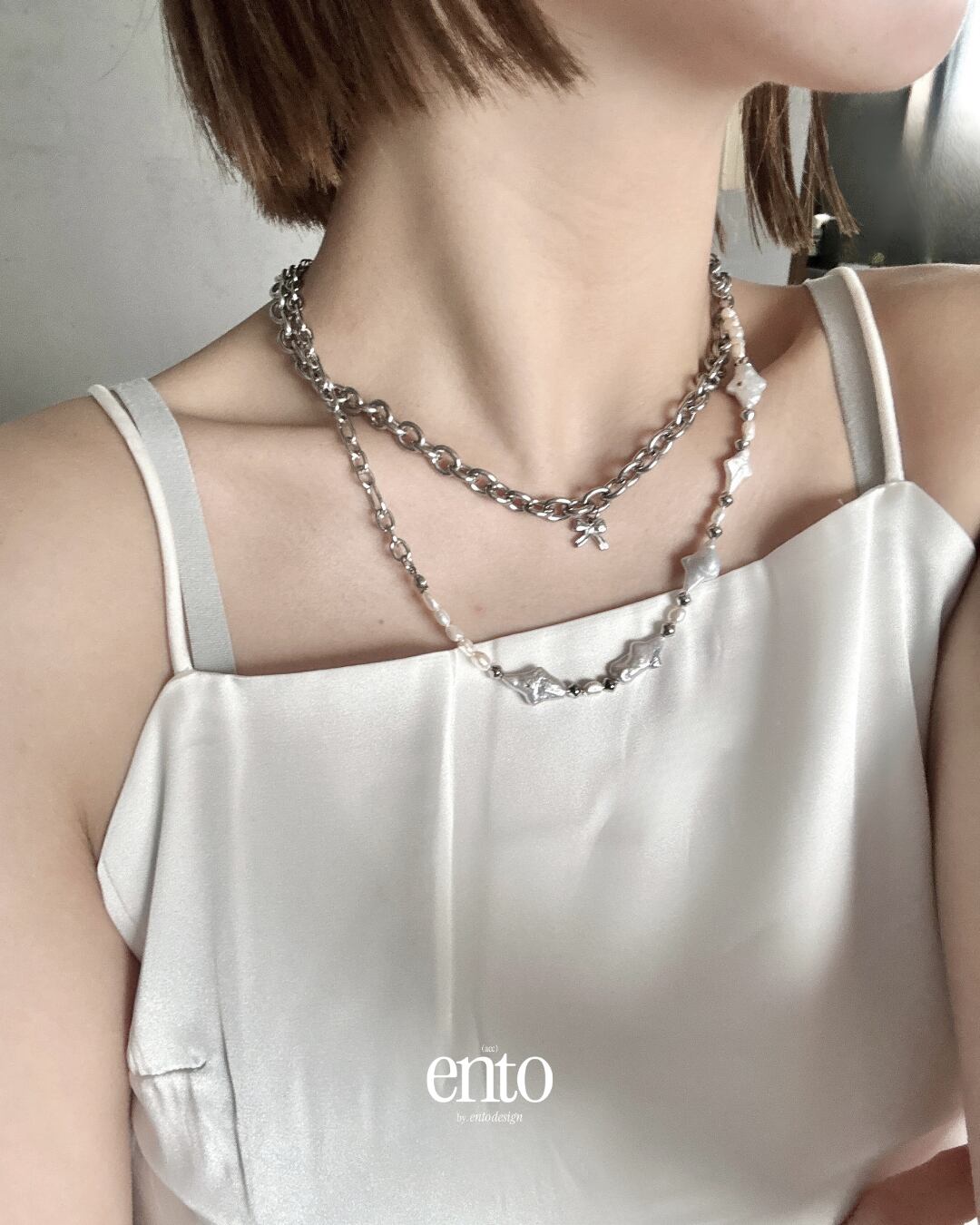 重厚感のあるシルバーチェーンに、