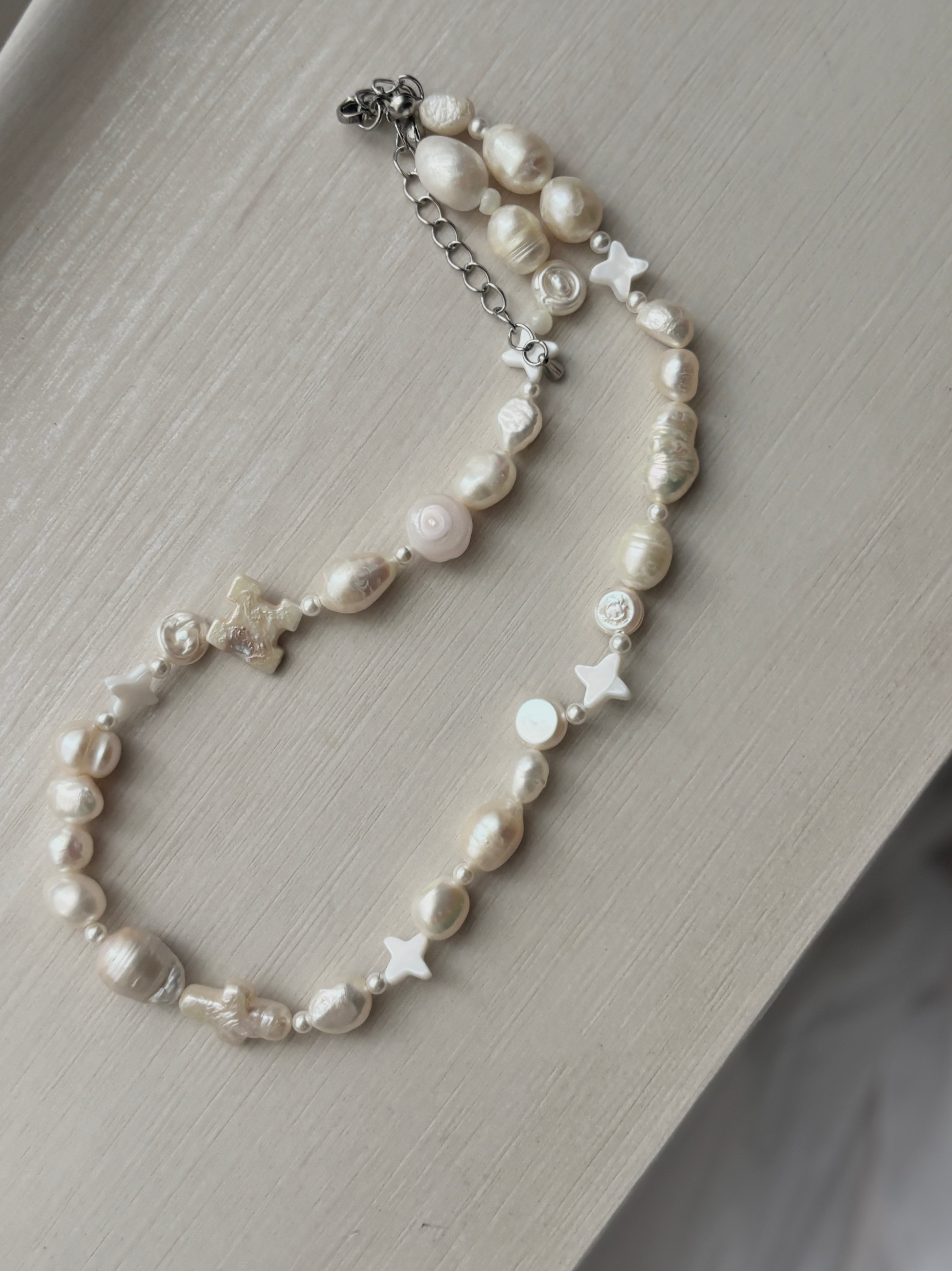 淡水パール/シェルビーズ/ビーズ/サージカルステンレス(留め具・アジャスター)