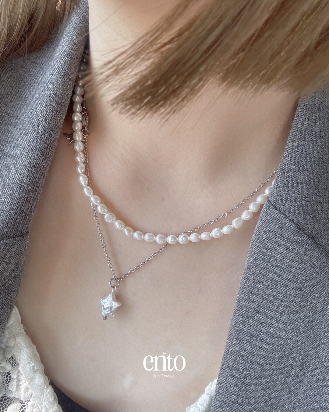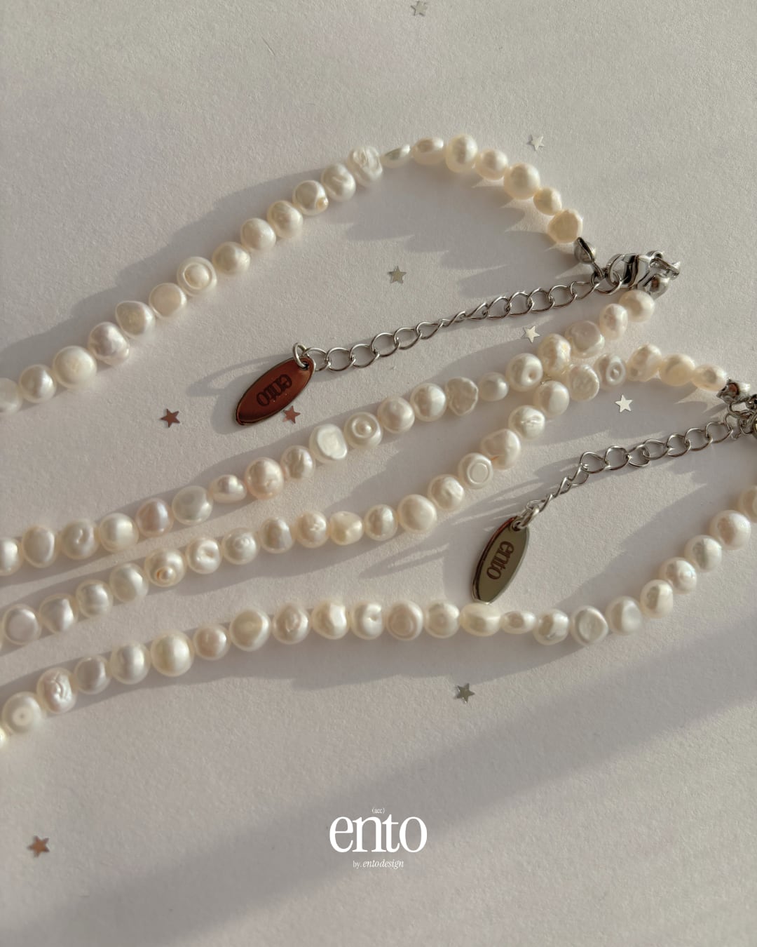 一粒一粒、異なる艶と形を持つ淡水パールをシンプルに連ねたネックレス。